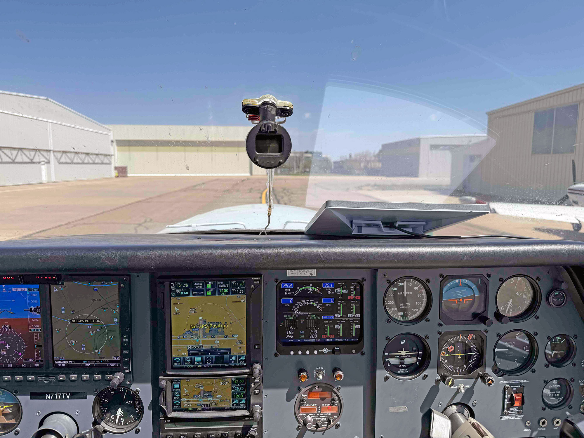 In the Baron, the next thing to test is mounting the Starlink terminal on the radar shelf. The plane has a Norton/Saint-Gobain radome, which is more microwave transparent than the factory radome, so it might offer slightly better signal quality while keeping the antenna tucked away. The plan is also to add power and a control switch on the avionics panel instead of having to use the cigar lighter.
