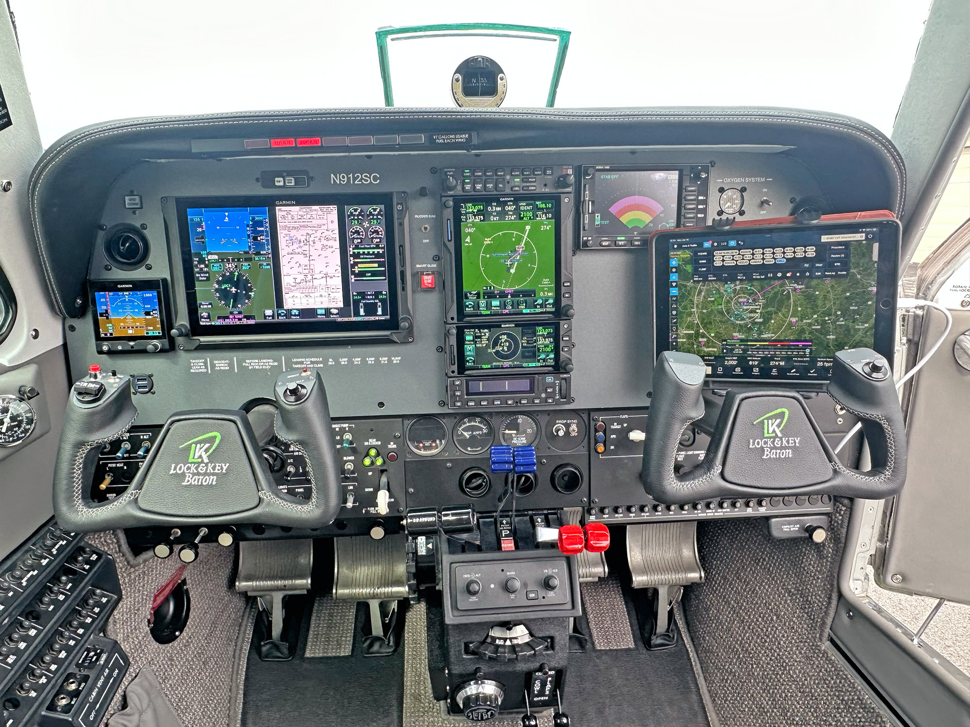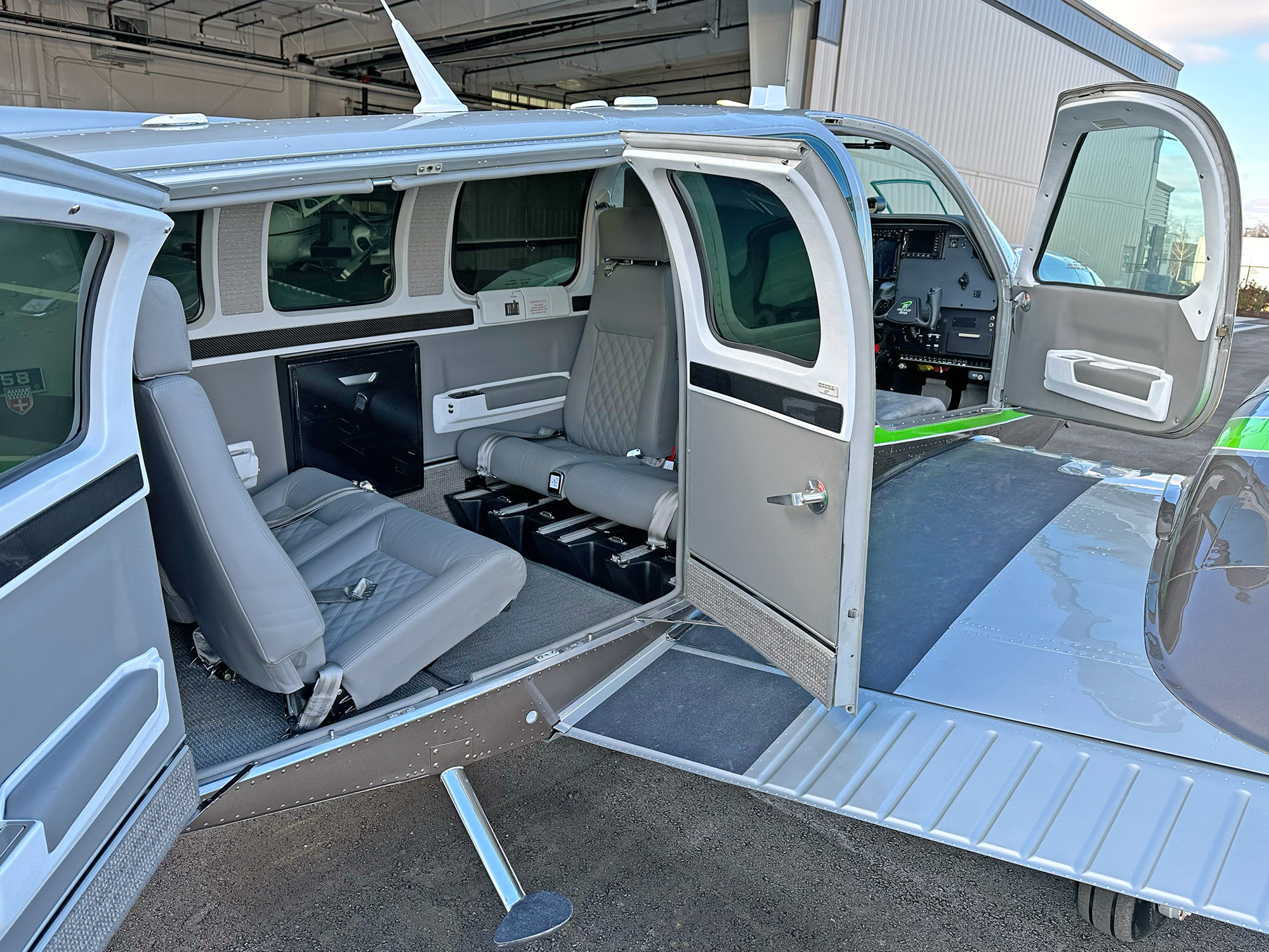 Visibility is good from all seats. From a passenger standpoint, the middle seats, particularly with club seating, are the most comfortable. The big aft door and separate over-wing door to the cockpit make loading more graceful than many other light twins, plus you sit high in a Baron’s seats, which encourages a good posture and leads to decent comfort on long trips. Plus, modern seating upgrades with good lumbar support help even more. Noise level is about standard for the class: noisy, although it pays to replace the soundproofing in older models.